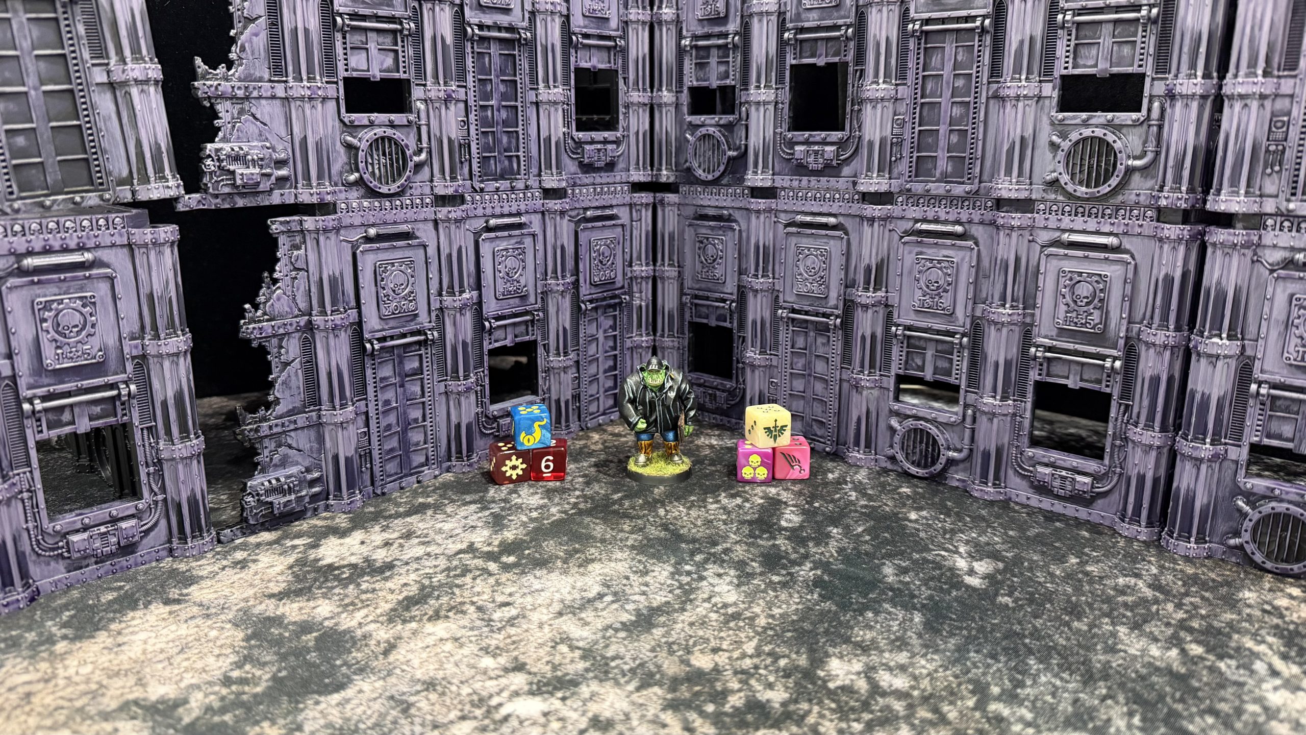 In‑house terrain and objective markers are provided by the Sector. These are official Games Workshop pieces intended to mimic the official layout as accurately as possible, ensuring a balanced battlefield without random factors. Acrylic footprints are supplied and follow the general footprint rules. All first‑floor building walls are treated as blocking line of sight. Light terrain features are defined as less than two inches in height. Units firing from the second floor do not gain a plunging fire bonus, and all units positioned on the second floor can be charged directly from the wall.